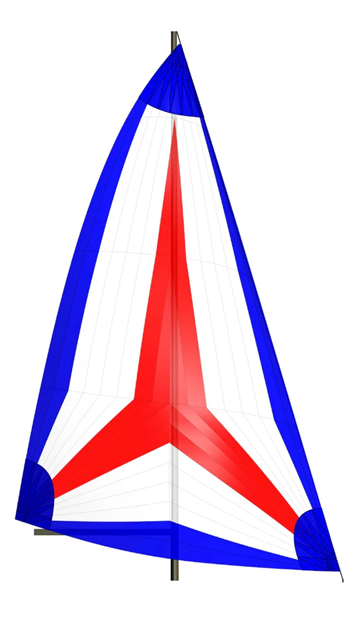 • color indicated side tape: Luff is Red, Leech is Blue and Foot is White;
