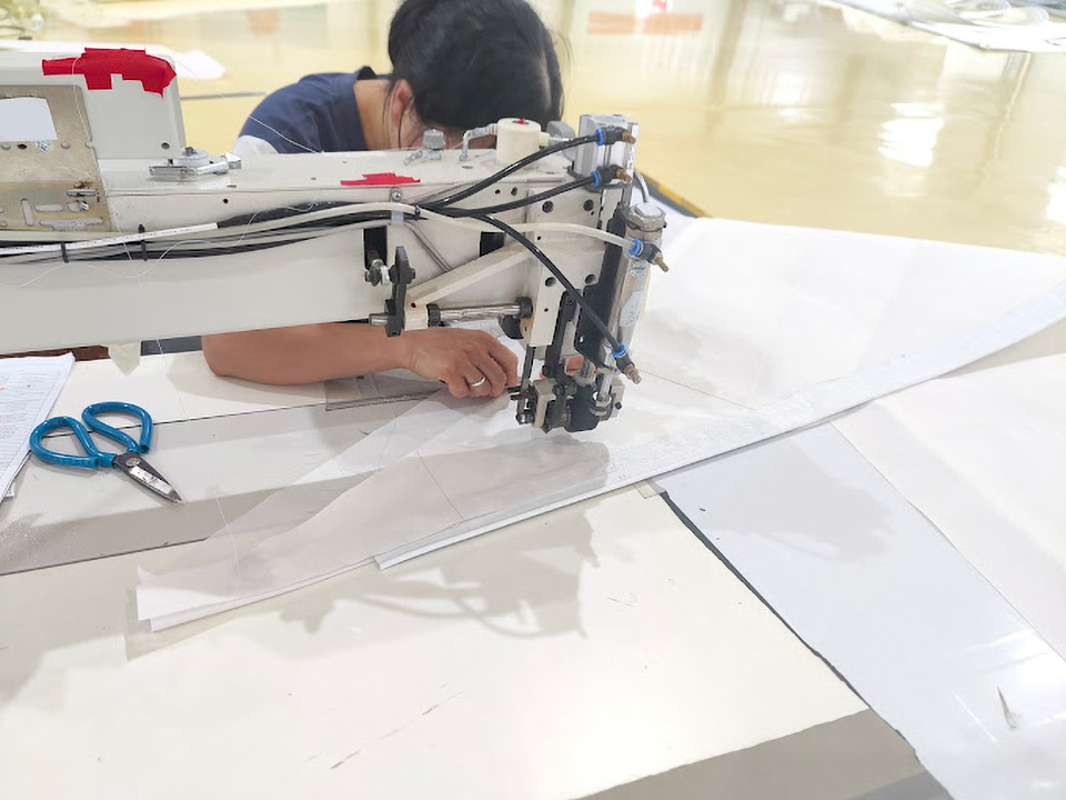 • panels width 50 cm max, taped and connected with a 50 mm triple zig-zag seam;