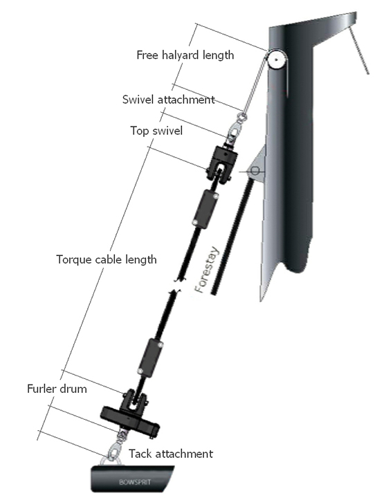 If we are choosing an asymmetrical spinnaker for furling, then we must take into account the dimensions of the upper swivel and the furling drum with a shackle in order to also subtract them from the total length obtained during measurement.