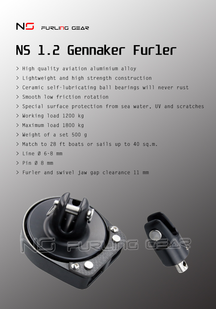 Code Zero Furler NS Furling Gear 1.2 is designed to handle sails with a “stretched” luff like Staysails, Code Zero and Code 1, Drifter, sailing catamaran Screecher, cruising asymmetric Spinnaker or Gennaker etc.