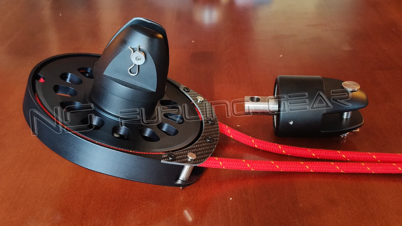 Basic NS5 furler set includes the drum and upper swivel. Ropes not included. We are providing a ready to use 10-12mm continuous control line separately. For your convenience we are preparing ready-to-use kits of furling equipment to reliably hoist asymmetric spinnaker or gennaker of any type. For each set there are optional accessories available to improve your furling experience.