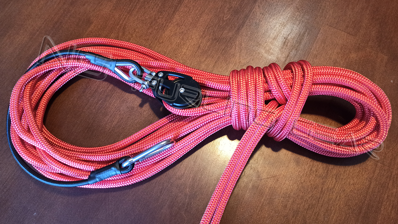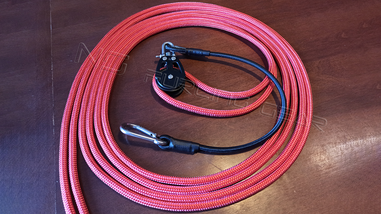 NS Continuous Furling Line kit includes the pre-spliced rope with the ball bearing aluminium block NS38 on the bungee cord with the stainless steel carabiner.