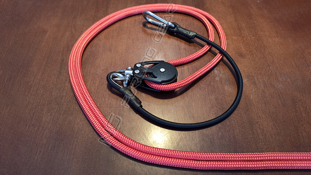 To calculate the required length of the endless rope kit you need to measure the distance from the spinnaker furler attachment point along the rubrail to the pushpit (or any other desired location on the boat). While choosing the length of the furling line kit, it is important to keep in mind that you need a bit of an excess rope on furler drum and a block (about 0.2 m). Moreover, the bungee cord stretches becoming 20-30% longer so the rope loop should be shorter to compensate this.